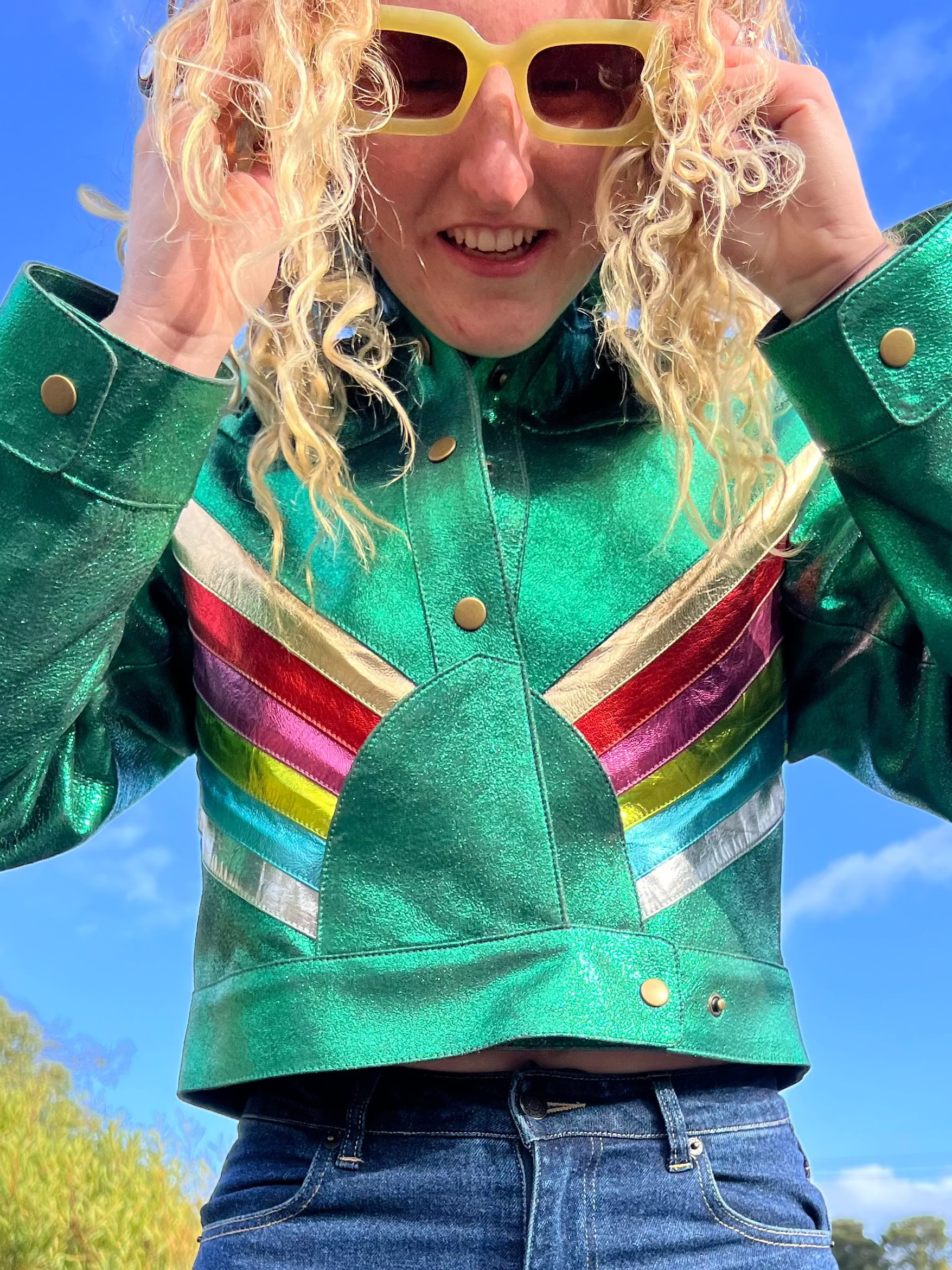 Retro 70s energy meets modern rebellion in bold, colourful leather made to be seen.